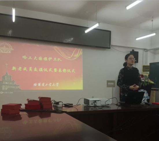 会议第一项,由贾延同学讲述了哈工大国旗护卫队悠久而光荣的发展历史,回顾了哈工大国旗护卫队22年来获得的诸多荣誉,总结了上一年成员的工作表现,并对新一年的工作作出规划。