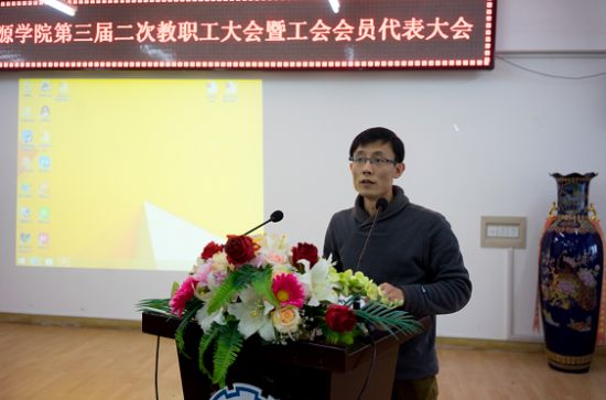 会议由91直播 党委书记田振辉主持,首先,由赵广播院长91直播 第三届二次教职工大会暨工会会员代表大会工作报告,对2014-2016年三年工作进行了全面的概括和总结,对学院近几年工作给予了高度的肯定,对学院2017年工作提出了殷切希望,表扬成绩的同时查摆问题,最后还为大家详细解读了学校人事制度改革制度,鼓励大家在科研、教学、管理水平上更上一层楼。