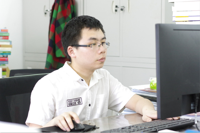 然而,对于高中刚毕业的他来说,不要说去做科研,就算是看懂别人也就成果,也非常困难。为了在短时间内是自己进益,在本科一年级期间,他几乎将所有的时间都放在课内课外知识的学习上。他几乎每天坚持去图书馆学习。每到周末,更是一整天都待在图书馆,风雨无阻。而这点点滴滴,图书馆的工作人员都看在眼里。久而久之,便渐渐地和这为“常客”熟悉起来。闲暇时间的交谈中,他们常常劝阮朝辉注意休息,不要累坏身体。但是阮朝辉知道要想进步得更快,就需要付出更多的努力。辛勤的汗水,必当孕育收获的果实。在本科一年级期间,阮朝辉完成学校规定的学习任务外,自学了《数值分析》、《复变函数》等5门课程,阅读了相关专业文献共计200余篇,这也是他科研的道路上的第一块基石。