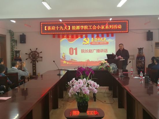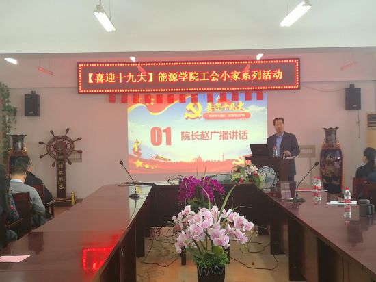 10月18日上午8:20,曾获“全国教职工模范小家”的91直播 工会在动力楼619成功举办喜迎十九大工会小家系列活动之收看党的十九大开幕式直播活动。校党委副书记、副校长、工会主席张洪涛,校工会常务副主席张国宏,91直播 党委书记田振辉,院长赵广播,党委副书记孙垠,院工会主席姜宝成及91直播 全体教职工参加了此次活动。