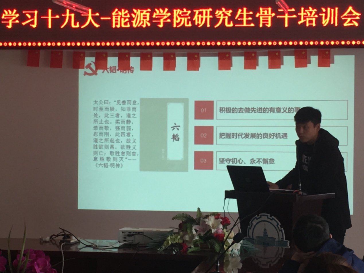 本次会议于10月20日下午在动力楼619召开,会上,张舜禹同学首先带领全体学生干部学习十九大报告,他指出:“中国梦属于我们每一个人,实现中国梦是我们当代青年学生应担起的历史使命,也是我们义不容辞的责任。习近平总书记讲话的重要思想我们应在实践中落实,为实现中国梦助力。”此外,为引导2017级研究生学习领会哈工大的传统与精神,张舜禹带领同学们学习了马祖光精神。会上他通过对马祖光院士的生平介绍使同学们感受到了马院士克己奉公、淡泊名利的崇高美德和甘为人梯、谦逊质朴的无私襟怀。