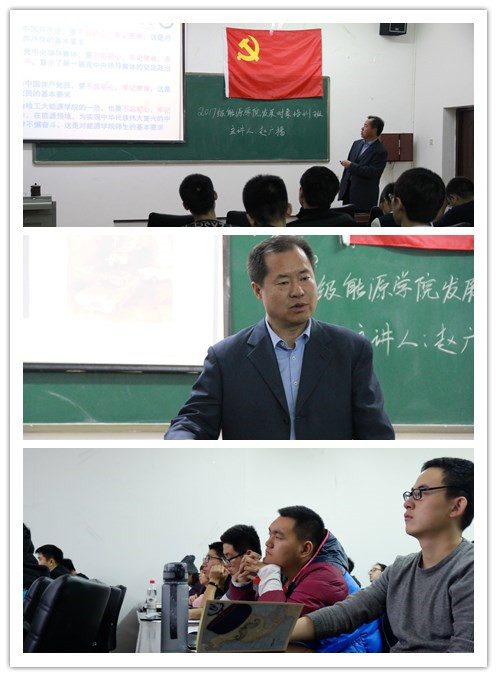 11月9日,91直播 分党校2017年秋季学期发展对象培训班第四讲在节能楼312顺利举办,本次党课以“不忘初心,牢记使命”为主题,91直播 院长赵广播教授主讲。