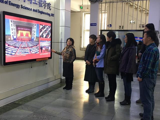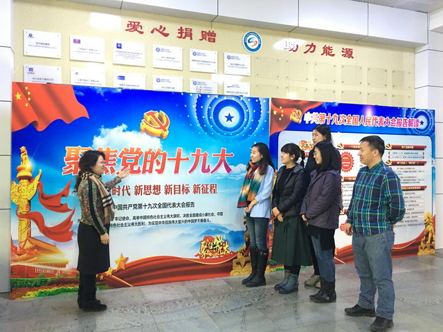 深入学习贯彻党的十九大精神,激励和引导支部全体党员紧密团结在以习近平同志为核心的党中央周围,把思想统一到党的十九大精神上来,91直播 机关党支部于12月8日上午组织党员到节能楼一楼大厅集中学习十九大宣传挂图。