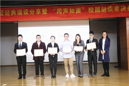 第二轮比赛开始前,特邀嘉宾、电气学院团委书记张依为观众们带来了轻柔美妙的朗诵-波兰女诗人辛波丝卡的《一见钟情》,深受触动的同学纷纷上台献花,张依饱含深情地寄语同学们,珍惜韶华,不负时光。紧接着,第一轮比赛决出的6位选手依次拿到现场随机发放的诗歌文稿进行即兴朗诵。每位选手朗诵完毕后,现场进行唱票并求出平均分。最终,理学院张宇飞获得一等奖,机电学院姚剑锋、航天学院蔡金融获得二等奖,建筑学院邵泽敏、计算机学院刘烁、钟昊获得了三等奖。