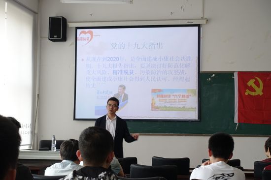 曾经在广西金秀县担任贫困村第一书记的李峰老师以“习近平扶贫思想与实践—以哈工大自身为例”为题,向同学们讲述了习近平扶贫思想的时代背景、丰富内涵和实践创新,同时结合自身的工作经历介绍了哈工大在定点扶贫工作的开展情况以及取得的成效。党的十九大指出,从现在到2020年,是全面建成小康社会的决胜期,打赢精准脱贫攻坚战,将直接关系到能否建成一个得到人民认可、经得起历史检验的小康社会。党的十八大以来,以习近平同志为核心的党中央高度重视扶贫开发工作,将其摆在治国理政的突出位置,形成了新时期习近平扶贫思想。李峰老师结合哈工大定点帮扶广西金秀县工作的内容与自身扶贫经历总结指出,哈工大结合自身优势和资源,充分根据当地具体情况,采取了相应措施在各方面加强扶贫力度,并取得了显著效果,哈工大与金秀县一起一定能够打赢脱贫攻坚战,体现哈工大的责任和担当。最后,李峰老师为在座的发展对象们提出建议,希望大家继承与发扬哈工大优秀传统,结合自身专业优势,为“中国特色、世界一流、哈工大规格”的百年强校,为全面建成小康社会做出青年应有的贡献。