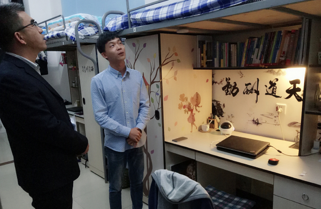 通过走访各个寝室,大多数寝室整体上卫生状况良好,同学们都在寝室里都能营造出一种良好的氛围,但个别寝室也出现了物品摆放较乱,未及时开窗通风等问题。走访期间,李峰老师亲自为各个党员寝室张贴91直播 党员寝室标牌,希望党员同志能够以身作则,起到模范带头作用。同时,十一长假临近,李峰老师提醒同学们要提高防火安全意识,叮嘱回家同学们要有自我安全意识,保护好个人财务及保证人身安全。