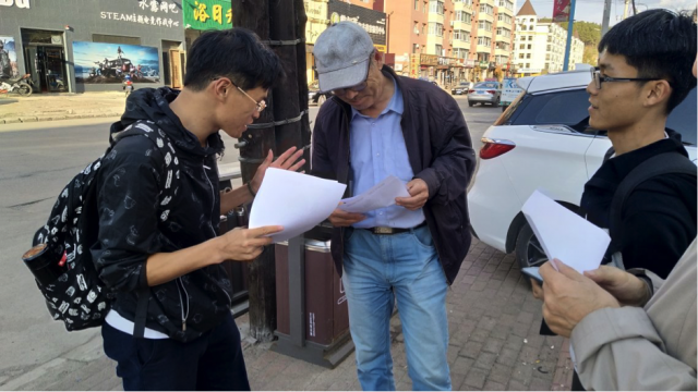 向当地居民宣传