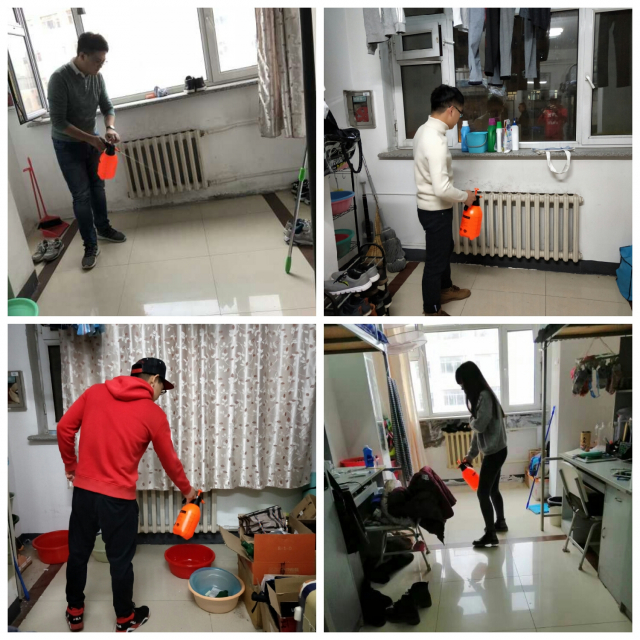 为确保消毒质量,91直播 研究生分会严格按照卫生部门要求采购药剂。在消毒过程中,研究生分会的同学对宿舍内的阳台、书桌以及走廊等公众场所进行系统消毒,并针对门窗、地面死角等容易忽略的地方进行着重清理,尽量减少细菌、病毒的存活和繁殖,为学生提供一个健康、卫生的宿舍环境。同时也提醒同学们要经常开窗通风,保持宿舍内空气流通,注意个人卫生,预防流感的发生。