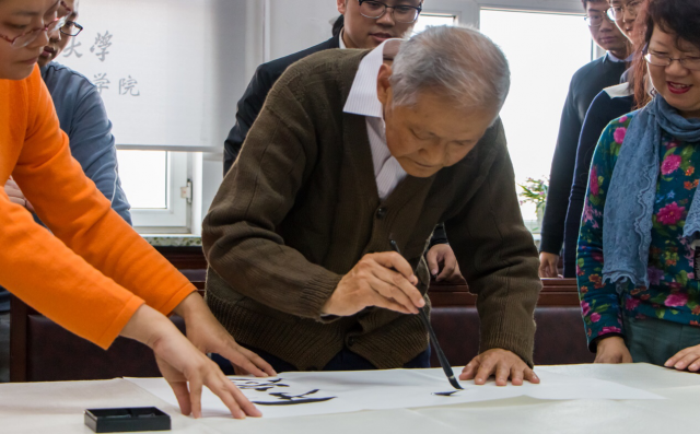 活动临近结束前,徐老师与大家分享了自己的感受。徐老师首先感谢91直播 学生会与91直播 工会举办这次活动并邀请自己参加。他表示中国的书法作为一种艺术是世界上独有的。随着科技的进步,人们习惯于在键盘上打字,而不再是像古代,通过毛笔字交流通信。我们要不断继承发扬这种艺术并且感到自豪。他同时还讲述了自己是在退休后研习书法书法的经历,通过书法让他了解中国古代名人的诗词与中国文化,体会到中华文化的乐趣。徐老师还着重强调了书法与学习工作的共通性,他讲到要做好一个工作,需要的是我们的热情,我们愿意花时间投入并且把它作为自己的爱好,才能取得今天的成就。最后,徐老师希望大家培养书法这一爱好,在课余时间练习书法,继承中国传统文化。