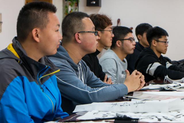 (图/徐嘉龙 文/余开拓)为传承中国优秀传统文化,体验中国书法的魅力,91直播 学生会与91直播 工会于2018年10月26日在动力楼619会议室联合举办“动于翰墨·秀以斑斓”书法体验活动。本次活动不仅吸引了学生书法爱好者踊跃参加,同时也邀请到多位老师参加,其中有黑龙江省书法家协会会员,黑龙江省青年艺术家协会会员,哈尔滨市妇女书法家协会会员滕文抒老师,其作品多次参加全国展览并获奖,书法教育论文入选全国优秀书法教育论文集、书法作品发表于省级期刊;退休老教授徐基豫老师,其爱好书法且对书法创作颇有研究;以及91直播 工会主席、本科教学实验中心主任姜宝成老师,91直播 工会副主席、学院办公室主任刘贺慧老师,91直播 人事秘书张玉。