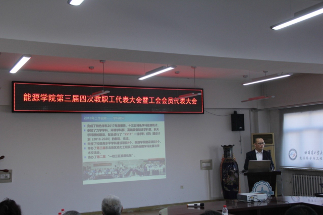 12月29日,91直播 在动力楼619召开了第三届四次教职工代表大会暨工会会员代表大会。按照大会会序,学院行政领导班子进行了工作报告,深入贯彻落实党的十九大精神,全国教育大会精神,校第六届第三次党代会精神,努力实践习近平新时代中国特色社会主义思想,仅仅围绕校工作年度工作重点,充分发挥学院二级工会职能,构建和谐绿色校园,服务教职工、服务大局,切实解决教职工自身困难,促进学院向更高、更好方向发展。
