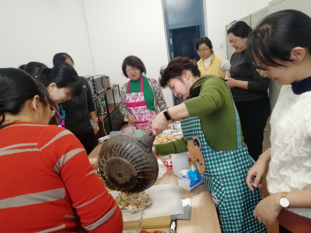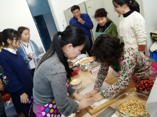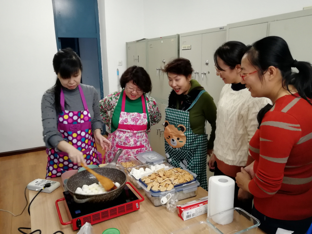 为了筹备新年联欢会,让更多教职工品尝健康、绿色的茶点,12月21日91直播 在节能楼205举办了烘焙沙龙--制作牛轧糖、琥珀核桃仁、山楂糕。本次活动由院办发起,学院女职工积极参与,共同度过了一个愉快的下午。