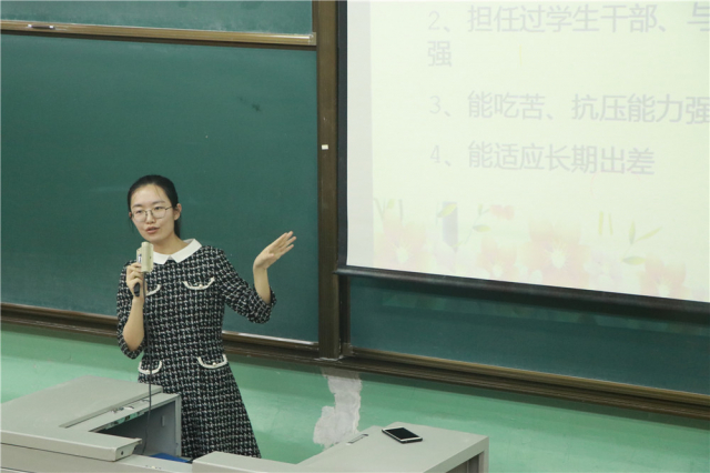 辅导员王博文首先对本学期工作进行总结,再次强调了学习的重要性,并对假期安全工作提出要求,尤其是在校准备学习、竞赛的学生安全稳定。接着,她分析了91直播 本科生的毕业情况,介绍了往年学院毕业、保研、出国、主动工作、以及选择考研的整体分布,指出在选择考研同学之中坚持到考场并成功读研的仅为1/3,剩余同学在春季招聘极为被动,因此尽早确立日后发展规划至关重要。接着何艺宁老师做了主题为“大学是道选择题”的就业指导讲解。何老师首先以自身职业生涯经历为例,劝诫同学尽早选择适合自己的道路。她结合91直播 往届学生的就业单位及网上招聘信息,为91直播 同学提出了多个可以大显身手的就业岗位,包括航天单位研发人员、汽车企业研发人员、知识专利审查员、出版社编辑等,开阔同学的就业选择道路。她指出作为哈工大人,一定要将个人命运与时代背景紧密相连,在给同学们提出的5个最应当关注的方向中,第一个就是新能源,希望同学们能够把握历史机遇,在我国新能源开发上做出贡献,实现人生价值。最后何老师回答了同学们在读研和就业上的一些提问。