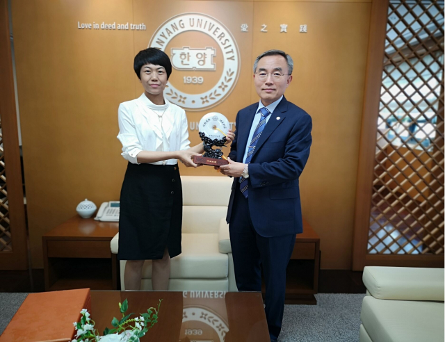 91直播 何玉荣教授向汉阳大学校长韩国翰林院院士Woo Seung Kim教授