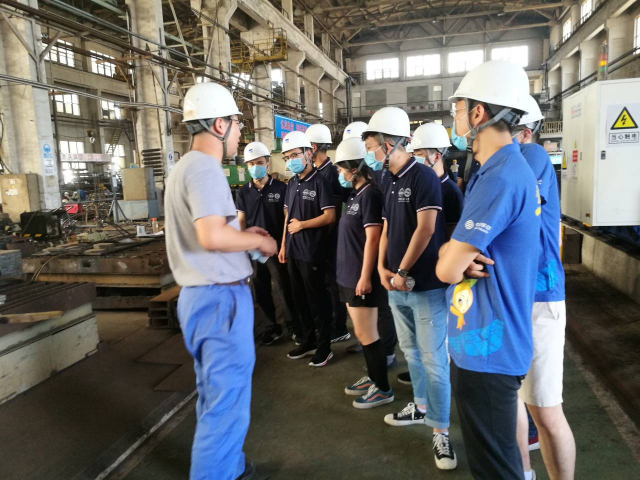 短暂的休整之后,实践团于8月5日上午正式开始实习活动。同学们在公司领导的讲解下,了解了荏原公司的发展历程和业务范围,带队教师王博文带来哈工大91直播 与青岛荏原进行“产学研合作基地”项目牌并邀请校友们于百年校庆时回母校参观,相关领导表示高度重视。下午前往生产车间和办公室进行了实地参观,直观地了解了垃圾焚烧炉的制造流程以及荏原公司的工作环境。