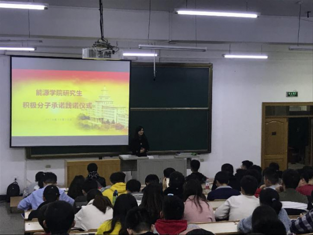 在91直播 全体硕士研究生党员的聆听和监督下,硕士一年级的入党积极分子进行了承诺答辩仪式,全体入党积极分子依次进行个人承诺书的宣读,分别从个人情况介绍、入党动机阐述、敬党爱党做法以及积极分子期间个人目标规划等方面做出郑重承诺。